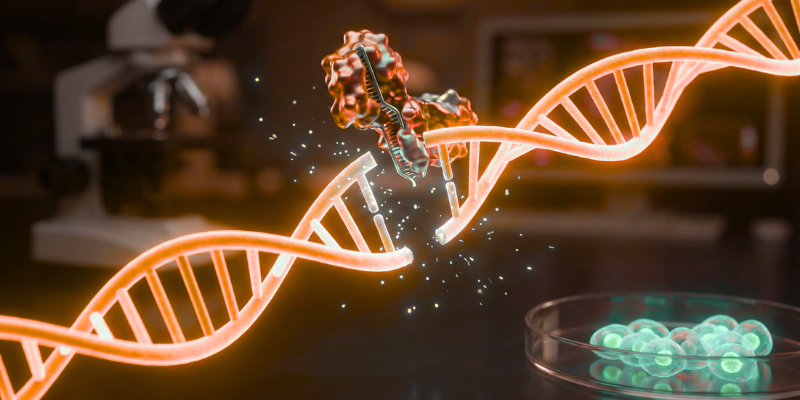 !CRISPR-Cas9 en fase de laboratorio. Avance científico real, pero sin aplicación clínica actual.